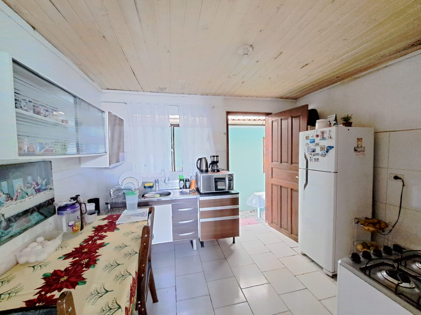 Casa J. Sta Regina com 100,00m², contendo 04 quartos, sala, 02 cozinhas, 02 banheiros, forro de PVC e madeira, piso lajota, janelas de alumínio e vitro, garagem, lavanderia, Terreno 170,00m²