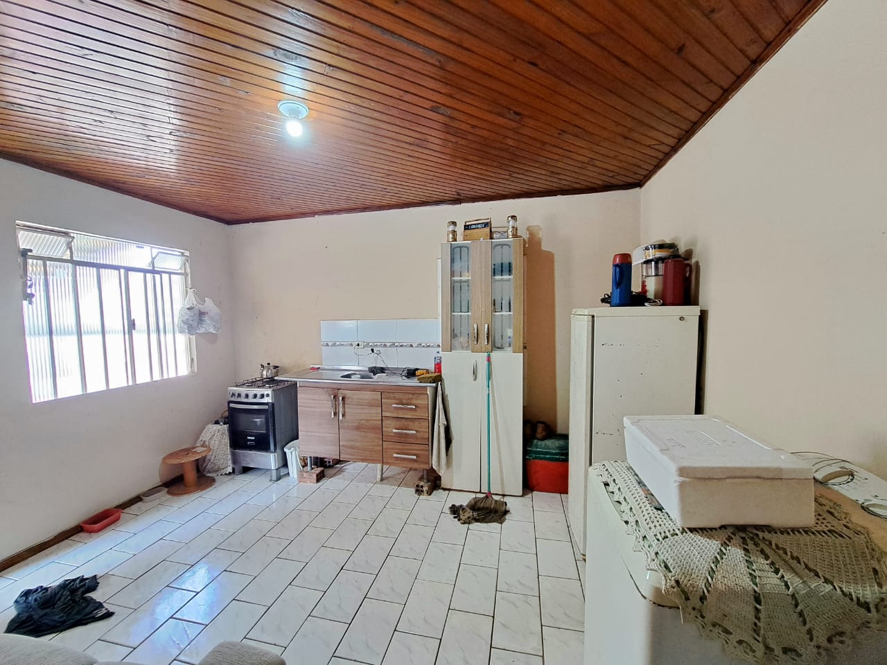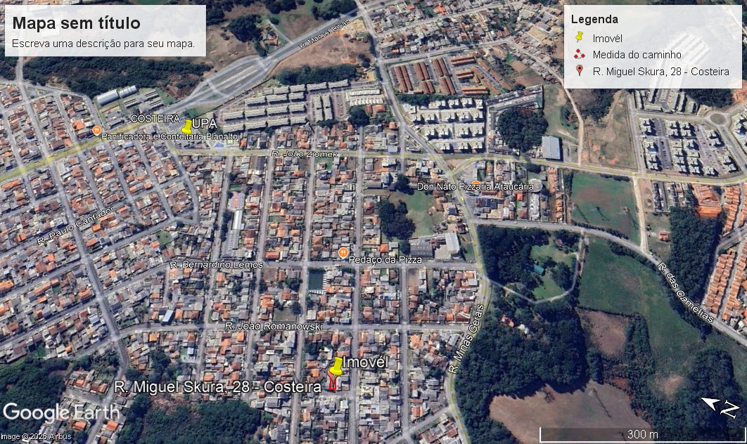 Casa no Costeira com 95,00m², sendo a casa da frente em alvenaria com 35,00m², contendo 01 quarto, sala, cozinha e banheiro, casa dos fundo de madeira com 03 quartos, sala, cozinha, banheiro, lavanderia coberta, garagem para 02 carros, janelas de ferro, piso lajota, próximo a escolas CMEI, mercados, farmácias, linha de ônibus, supermercado. Terreno com 165,00m².