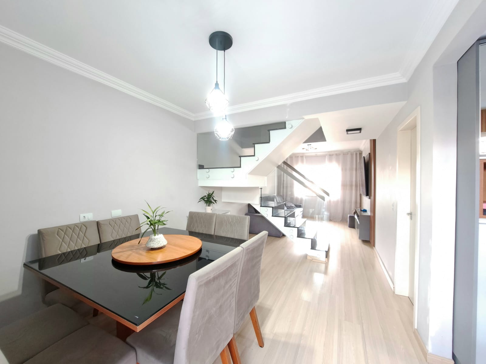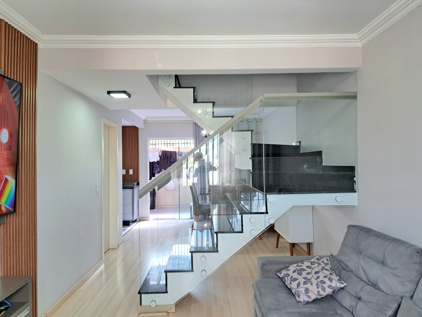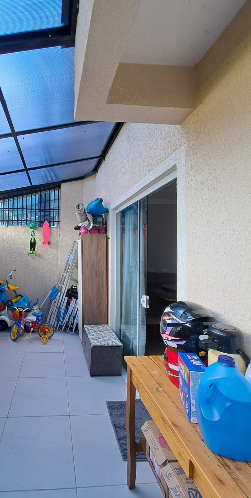 Sobrado Costeira com 108,52m², sendo parte de baixo contendo, sala com sanca rebaixada, copa, cozinha embutida, lavabolo, garagem para 03 carros lavanderia coberta, acabamento em gesso, parte superior contendo, 03 quartos sendo uma suíte e close, moveis embutido, um banheiro social com box blindex, sacada, esquadrilhas de alumínio branco e grade de proteção, escada em granito e vidro, piso porcelanato e laminado, sistema de água quente, ponto de ar condicionado portão eletrônico. Terreno com 110,00m².