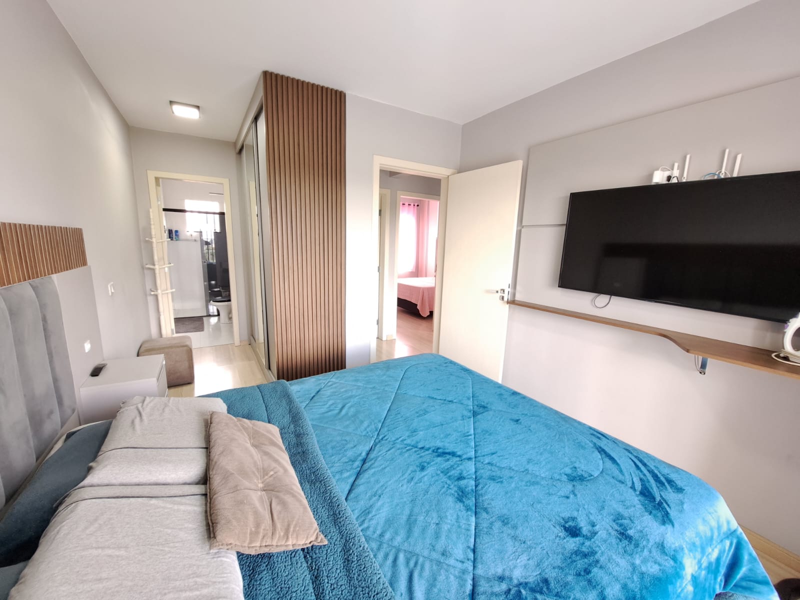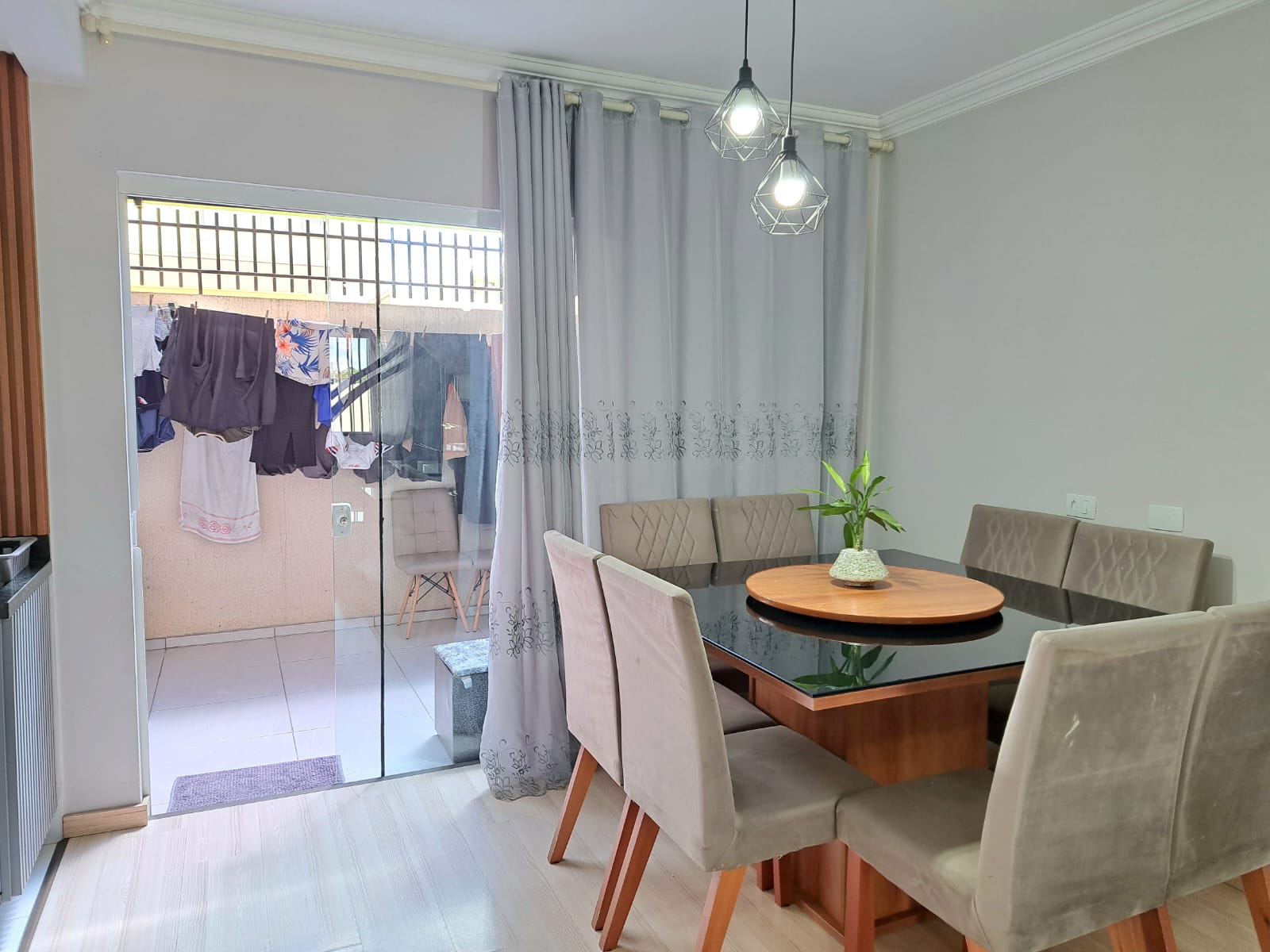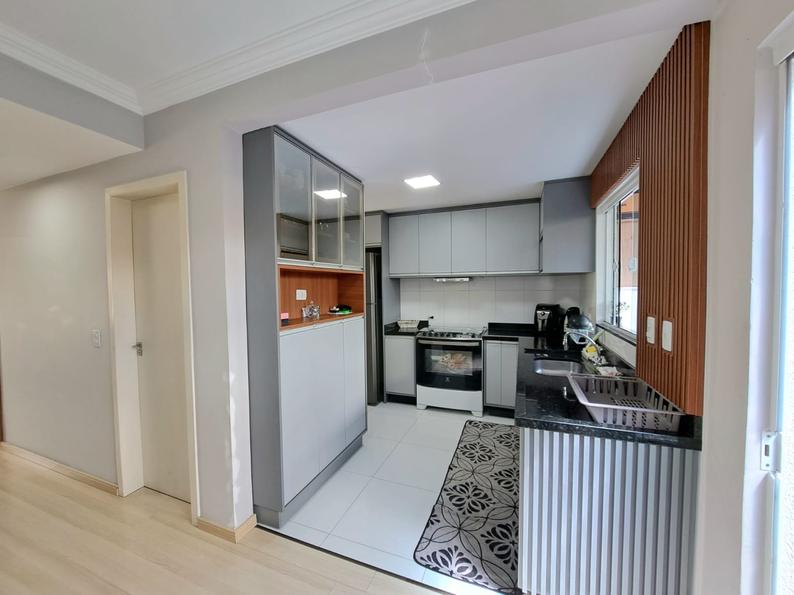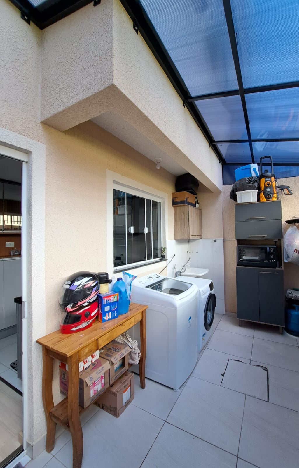 Sobrado Costeira com 108,52m², sendo parte de baixo contendo, sala com sanca rebaixada, copa, cozinha embutida, lavabolo, garagem para 03 carros lavanderia coberta, acabamento em gesso, parte superior contendo, 03 quartos sendo uma suíte e close, moveis embutido, um banheiro social com box blindex, sacada, esquadrilhas de alumínio branco e grade de proteção, escada em granito e vidro, piso porcelanato e laminado, sistema de água quente, ponto de ar condicionado portão eletrônico. Terreno com 110,00m².