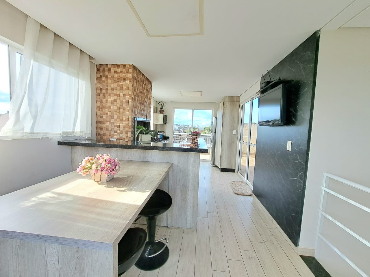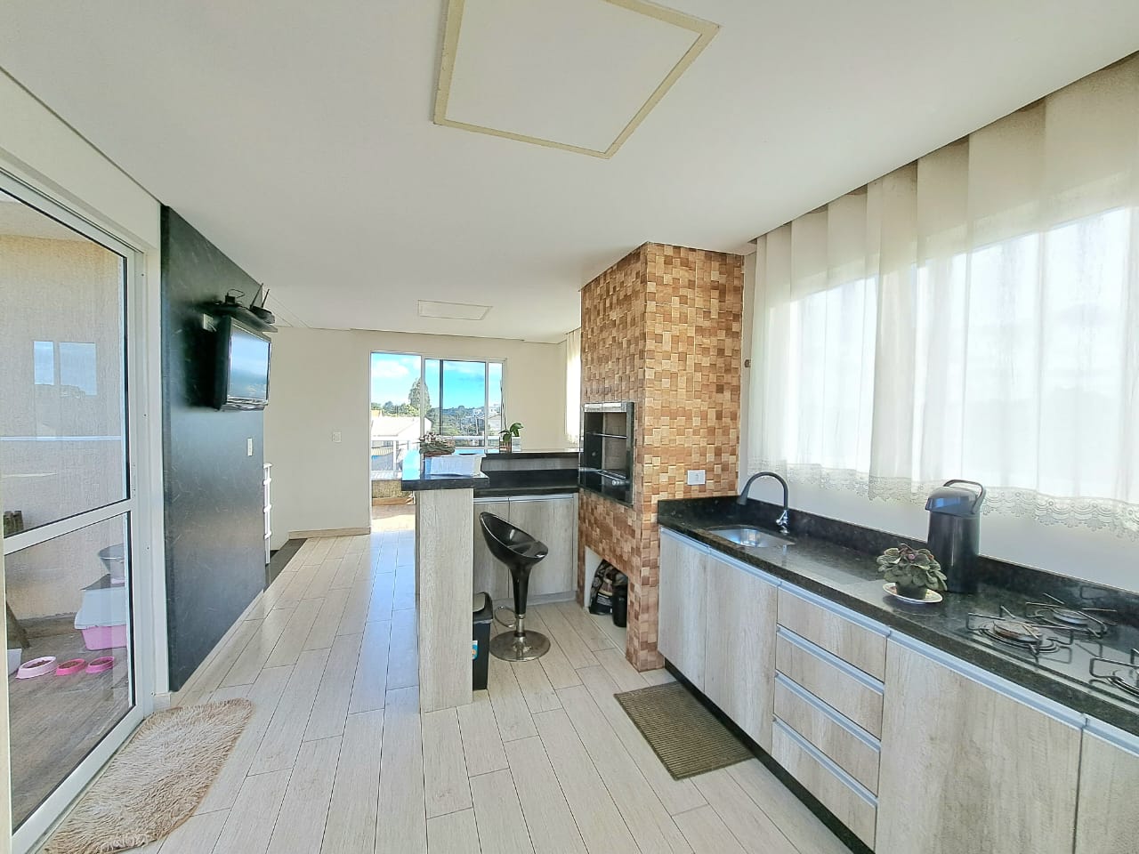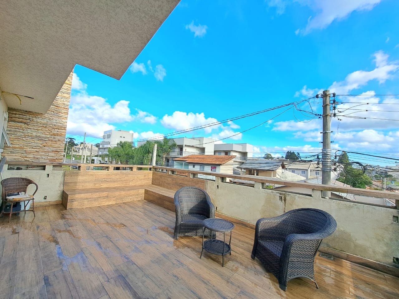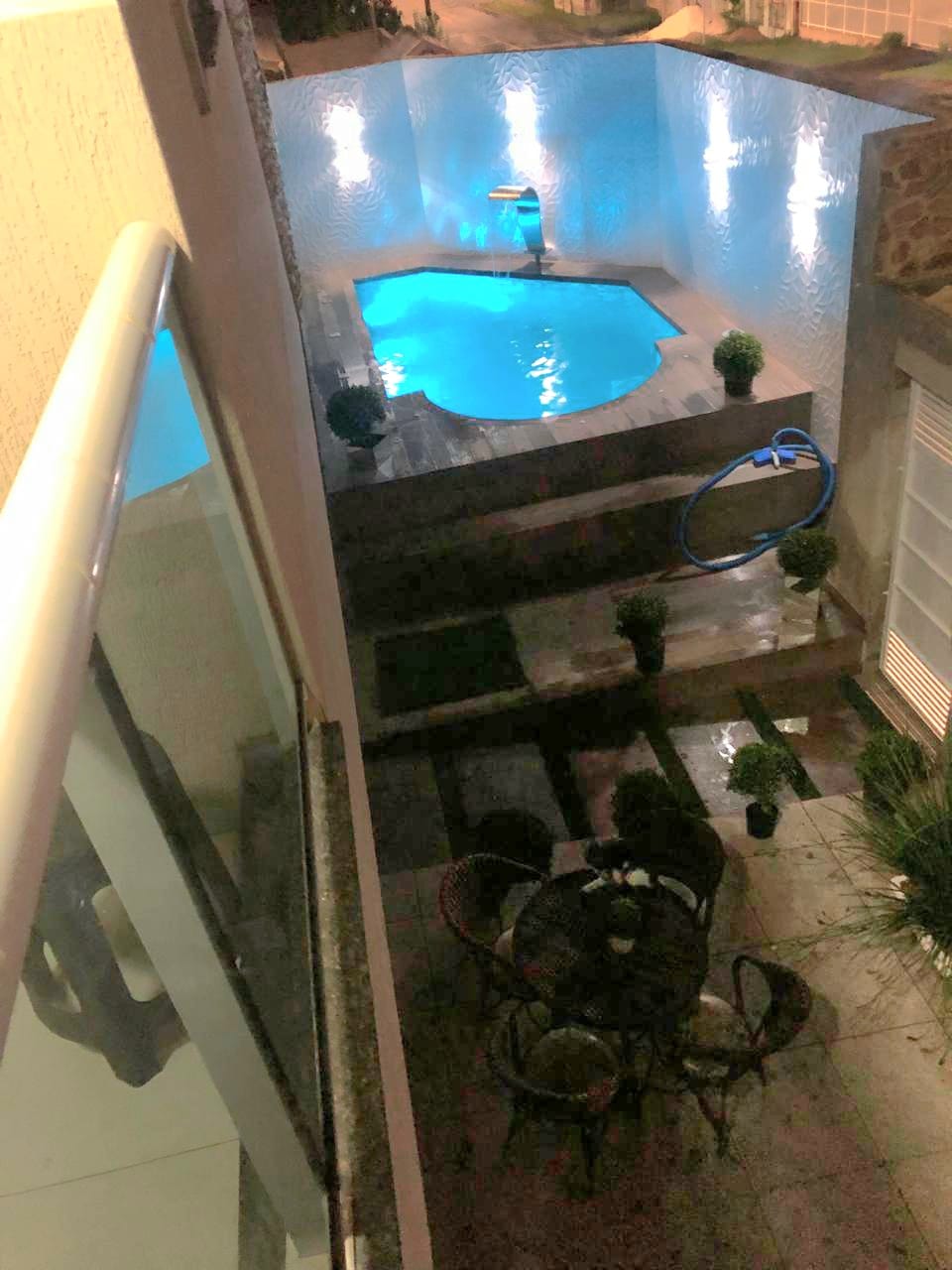 Sobrado Tríplex Jardim Iguaçu com 170,00m² parte de baixo contendo, sala ampla de estar e de jantar, cozinha embutida, 01 banheiro social, lavanderia coberta, garagem, 2º piso com 03 quartos todos com móveis embutidos, sendo um suíte com hidro, closet, embutido, 01 banheiro social e sacada, 3º piso, espaço gourmet com cozinha embutida e churrasqueira, com 03 sacadas, piso porcelanato, acabamento todo em gesso, escadas em granito, janelas esquadrilhas de alumínio branco, box blindex, piscina com cascata,, portão eletrônico, Com acabamento interno pastilha de pedra e externo de pedra no muro. Ótima localização. Terreno com 180,00m².